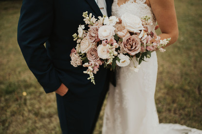 Taylor and Seth set a date, started planning and then the world shut down. But that didn’t stop this pair from enjoying the wedding planning stage! As public service employees (A medical student in residency and a teacher) this DREAM TEAM put their wedding on hold an entire year! Their wedding was a blend of family, friends and a handful of students, and let’s just say, the PARTY was worth the wait! We love how they even incorporated pups into this special occasion with the biscuit bar! Taylor was the life of the party in her Emily Hart Collection dress that showcased an illusion back and beaded details throughout the fit and flare silhouette.